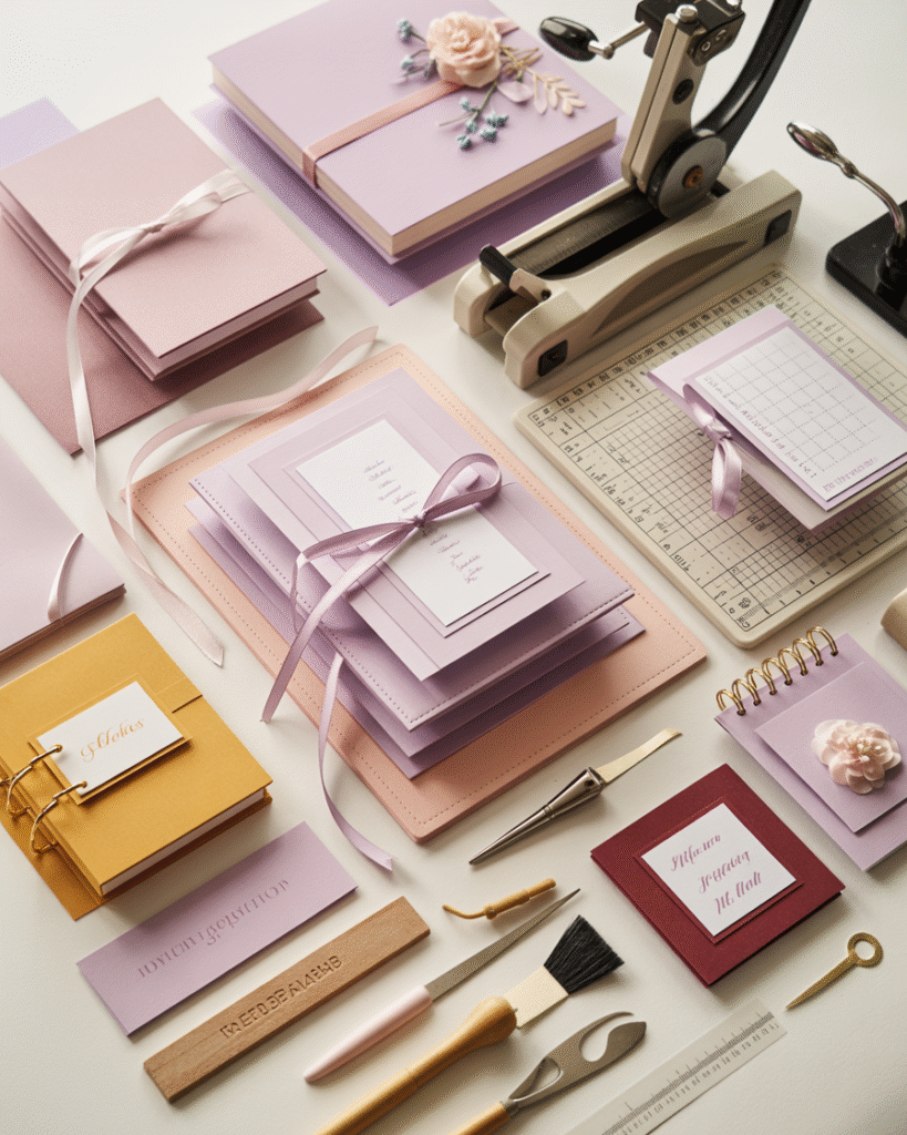 Invitations, party favors, boxes, toppers, tags, complete kits, agendas, notebooks, planners, notepads, and much more — all with a professional finish.